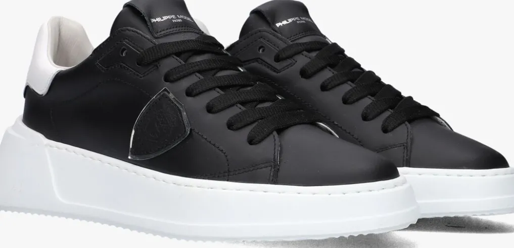 Damesschoen model New temple in de kleur zwart van Philippe Model. Deze lage runner is uitgevoerd in leer in de kleur zwart. De achterbies en de instap is uitgevoerd in wit. De binnenzijde is uitgevoerd in leer en een suède contrefort draagt bij aan het loopgemak. De rubberen loopzool heeft een grof profiel voor stevige grip.