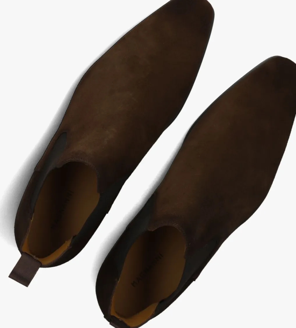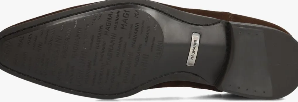 Herenlaars model 20109 in de kleur bruin van Magnanni. Deze chelsealaars is uitgevoerd in bruin suède en bevat elastiek aan weerszijden van de schacht en een aantreklus op de achterbies welke het aan-en uittrekken helpen te versoepelen. De neus loopt spits toe en heeft een carré afwerking. Het binnenwerk is volledig met leer gevoerd, een stevig contrefort draagt daarnaast bij aan een ultiem loopcomfort. Verder heeft dit model laars een rubberen loopzool met een fijn profiel voor een stevige grip en meet de hak circa 2 cm.