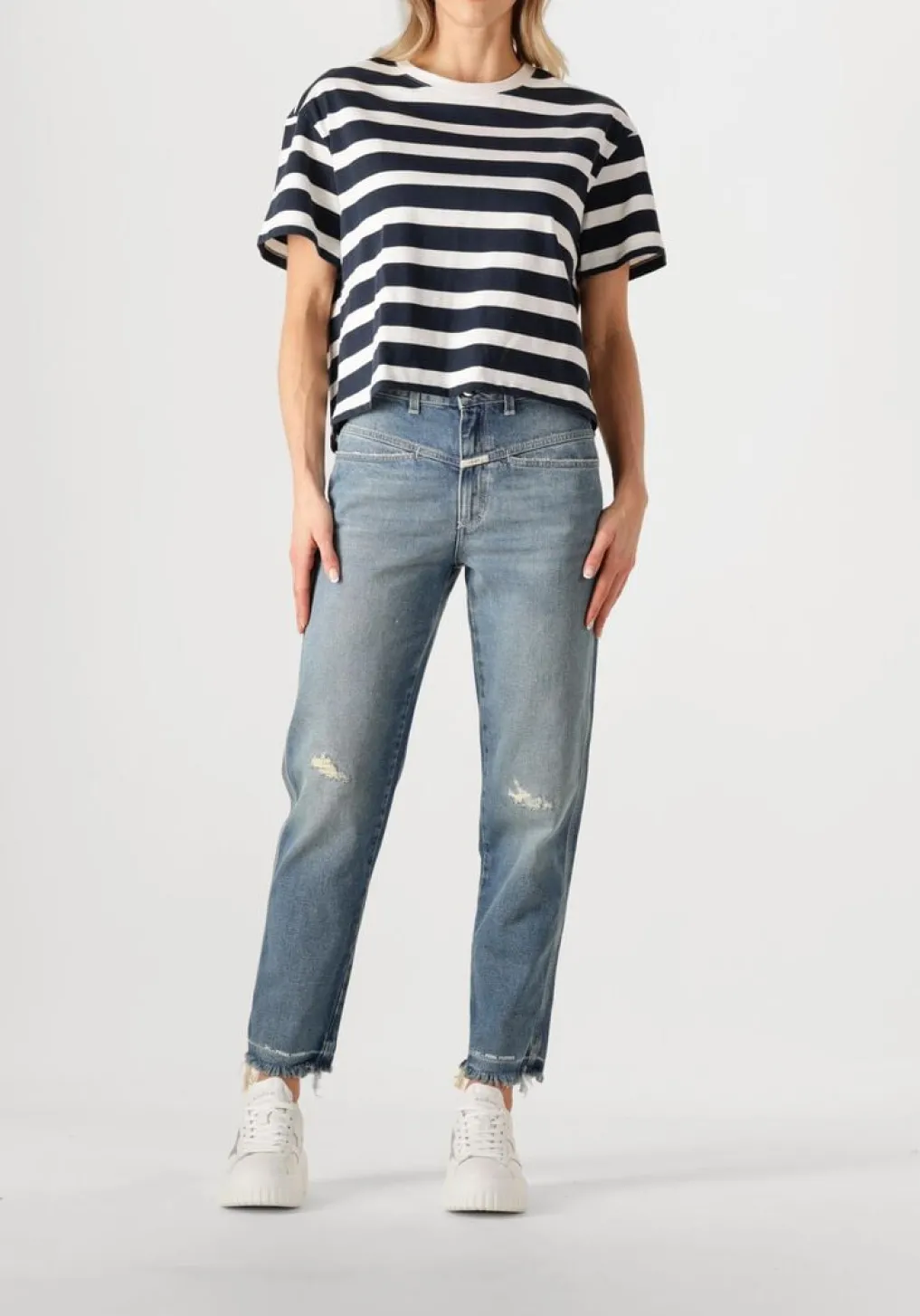Ontdek de perfecte balans tussen comfort en stijl met de blauwe PEDAL PUSHER mom jeans van CLOSED. Gemaakt van hoogwaardig katoen en een vleugje elastaan, biedt deze jeans een flatterende pasvorm die met je meebeweegt. De diepblauwe kleur geeft een tijdloze uitstraling, ideaal voor elke gelegenheid. Combineer moeiteloos met je favoriete tops en schoenen voor een veelzijdige look. CLOSED staat bekend om zijn vakmanschap en oog voor detail, wat zich vertaalt in kledingstukken die zowel modieus als duurzaam zijn. Voeg een vleugje elegantie toe aan je garderobe met deze must-have jeans.