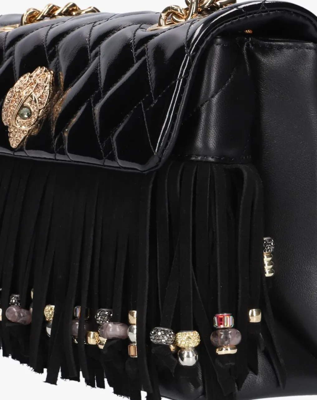 Ontdek de KENSINGTON FRINGE BAG van KURT GEIGER LONDON, een stijlvolle schoudertas voor dames. Deze zwarte tas is perfect voor het herfst- en winterseizoen. Gemaakt van soepel leer en voorzien van speelse franjes, voegt deze tas een vleugje flair toe aan elke outfit. De tas biedt voldoende ruimte voor al je essentials en is ideaal voor dagelijks gebruik. KURT GEIGER LONDON staat bekend om zijn unieke ontwerpen en aandacht voor detail, waardoor je altijd verzekerd bent van een modieuze look.