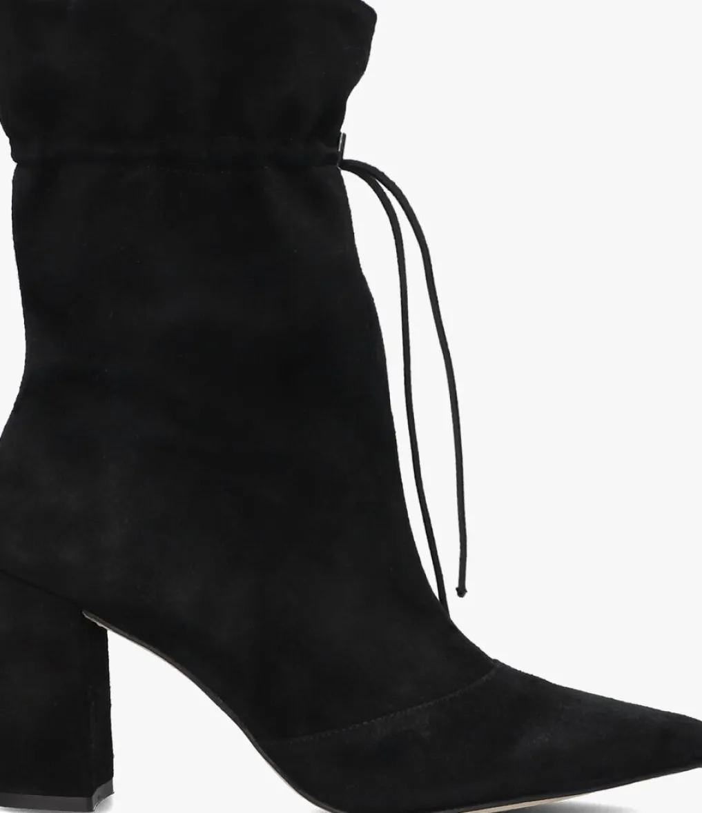 Damesschoen model L1140 in de kleur zwart van Lina Locchi. Deze suède enkellaars met aantreklus voor dames van het merk Lina Locchi. Deze enkellaars met spitse neus is uitgevoerd in suède in de kleur zwart. De laars heeft zowel een halve rits aan de binnenzijde als een treklus aan de bovenkant. De binnenkant is uitgevoerd in leer en een stevig contrefort draagt bij aan het loopcomfort. De leren zool heeft een glad profiel en beklede hak meet circa 7 cm.