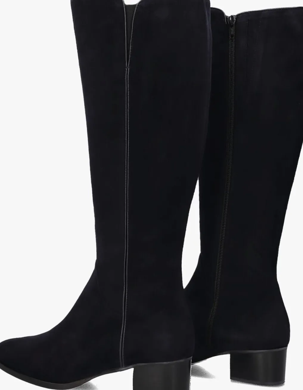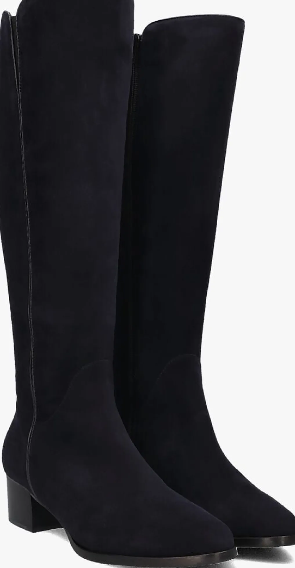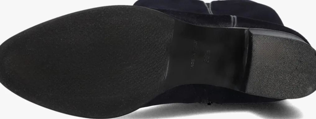 Hoge suéde laars voor dames van het merk Marcos Nalini. Deze hoge laars met halfronde neus is uitgevoerd in blauw suéde. De binnenkant van de schacht bevat een rits om het aan- en uittrekken te versoepelen. De binnenzijde is uitgevoerd in leer en een stevig contrefort draagt bij aan het loopgemak. De rubberen loopzool heeft een medium profiel en de hak meet circa 4 cm.